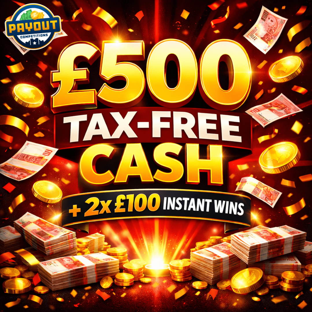 At Payout Competitions, we keep it simple – real prizes, real winners, and fast payouts. This week we’re giving you the chance to win an incredible £500 TAX-FREE CASH, and we’ve made it even better by including 2x £100 CASH INSTANT WINS in this draw!