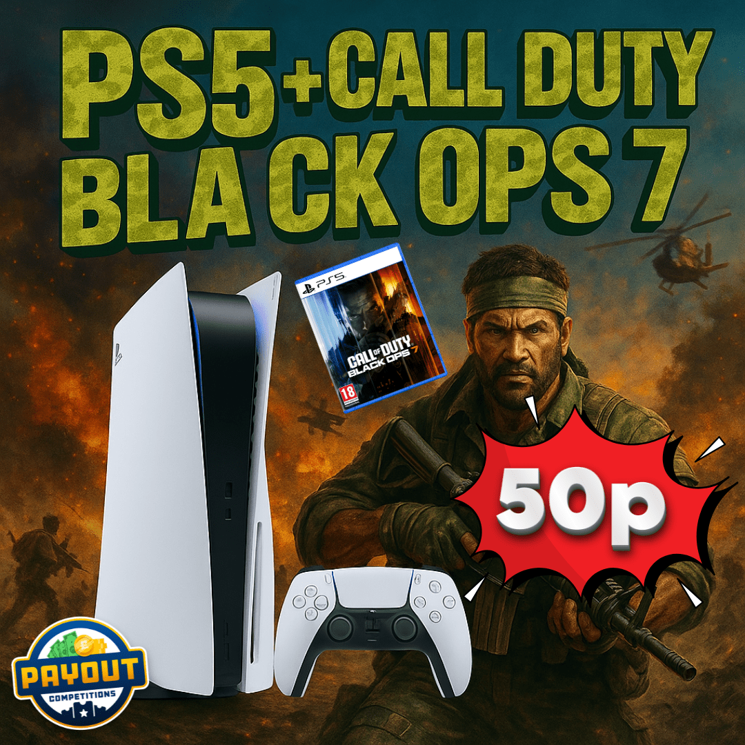 Get ready for the ultimate gaming upgrade! For only 50p per entry, you could take home the PlayStation 5 Disc Console, the most powerful PlayStation ever made, paired with the newest blockbuster title, Call of Duty: Black Ops 7.